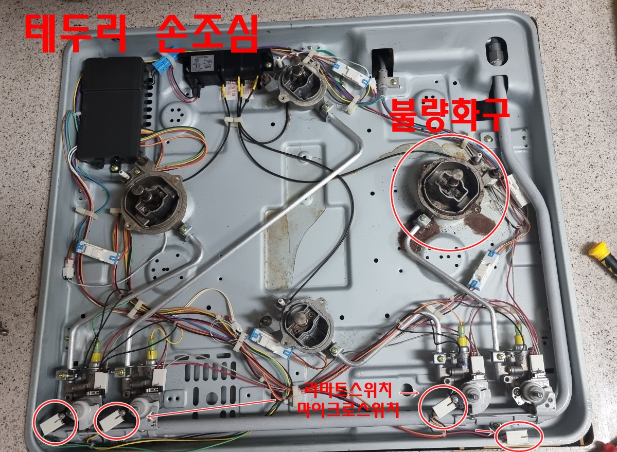 - 혹시나 불량이 아닌가 해서 제일 작은 화구의 마이크로 스위치와 바꿔 끼웠는데....