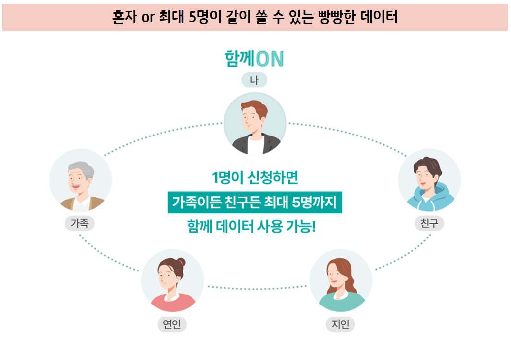 ■ 내 폰 그대로! 데이터는 함께 쓸 수 있어야 하니까 혼자 또는 최대 5명이 나누어 쓰는 데이터 함께ON