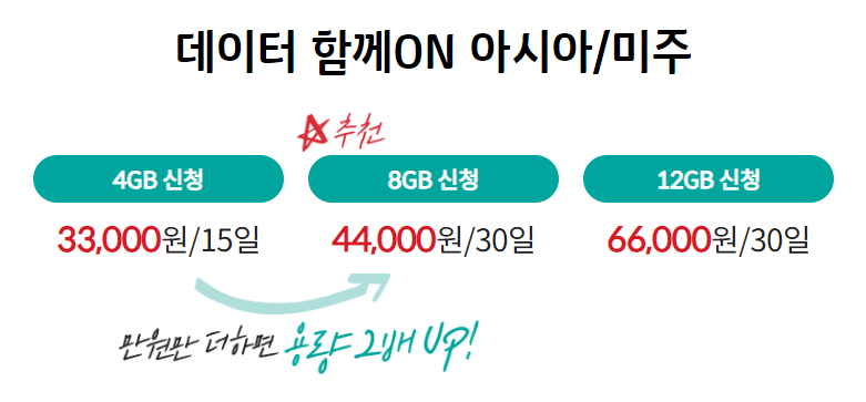 KT로밍 데이터함께ON 최대 5명이 함께 데이터쉐어링