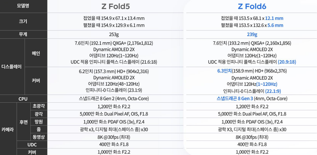 ■ Galaxy Z폴더5 vs Z폴더6 비교
