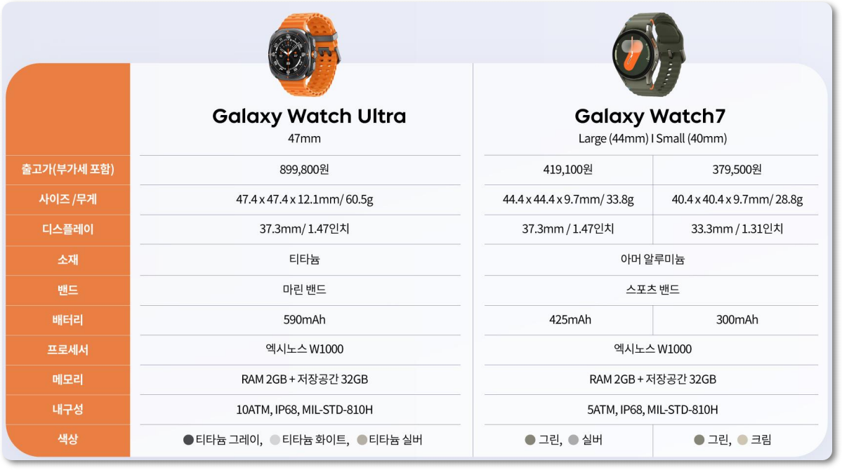 1. 갤럭시 워치7 & 갤럭시 워치 울트라 스펙