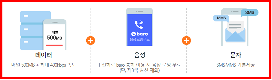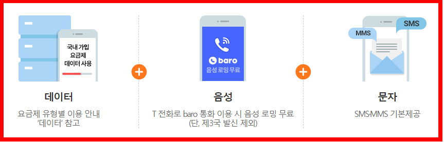 ■ 음성: T전화로 baro 통화 이용시 음성로밍 무료