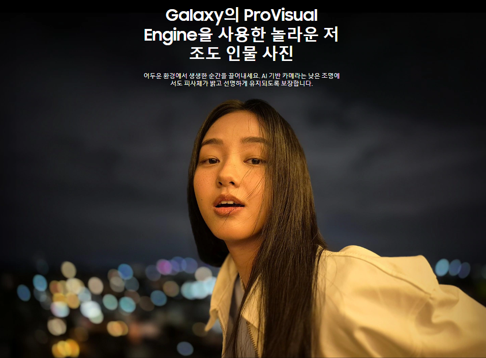 Galaxy S24FE는 AI 기반의 프로비주얼 엔진(ProVisual Engine)을 탑재해, 줌 기능부터 나이토그래피(Nightography)까지 한층 더 안정된 화질을 제공. 향상된 ‘ISP(Image Signal Processing)’도 탑재돼 어두운 환경에서도 노이즈가 적은 선명한 인물 사진을 촬영할 수 있습니다.