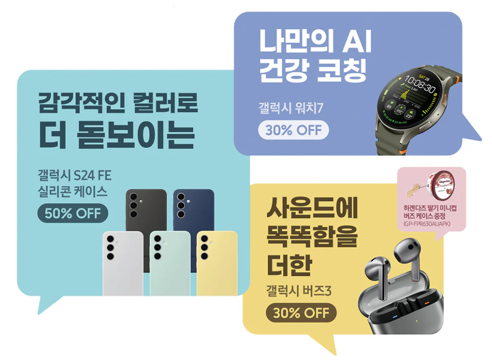 Galaxy S24FE 구매 개통하신 고객님들께 다영한 제품을 할인가에 구매할 수 있는 혜택을 드립니다.
