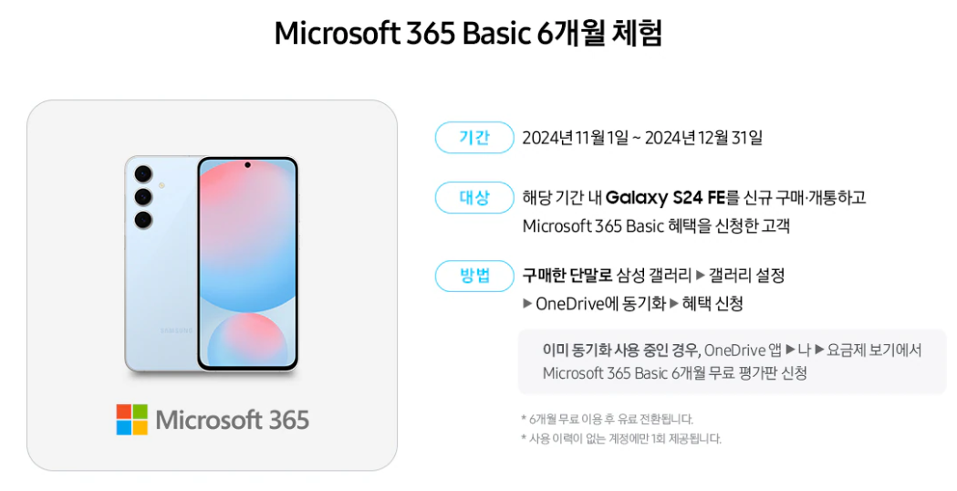 해당기간 내 Galaxy S24FE를 구매.개통한 고객(최초 통화일 기준)