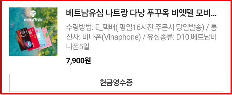 2. 데이터 현지유심 구매 - 비나폰 데이터 무제한 5일 유심