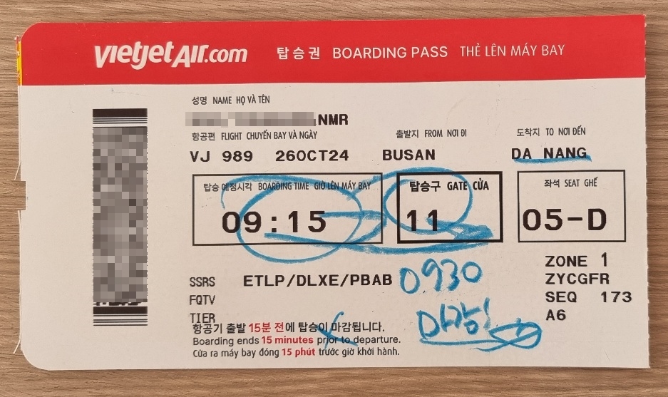 1. 김해 공항에서 다낭으로 출국