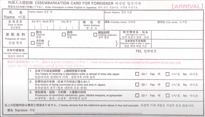 일본 입국신고서 및 세관신고서 쉬운 작성 방법