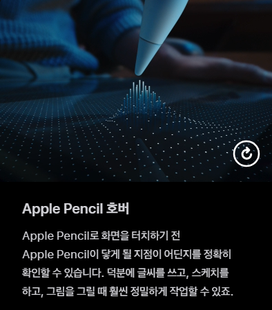 - 스퀴즈, 배럴 롤, 햅틱 피드백, Apple Pencil호버 등의 첨단 기능 탑재