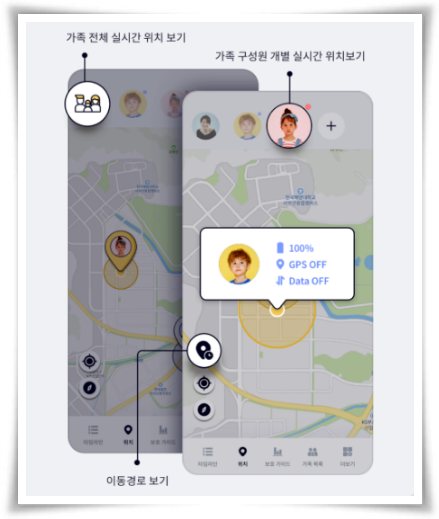 실시간 위치/이동 경로 제공, 주기적 위치 알림도 제공 합니다.