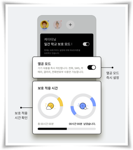 - 템플릿으로 편리한 사용관리(이용시간, 사용가능 앱)