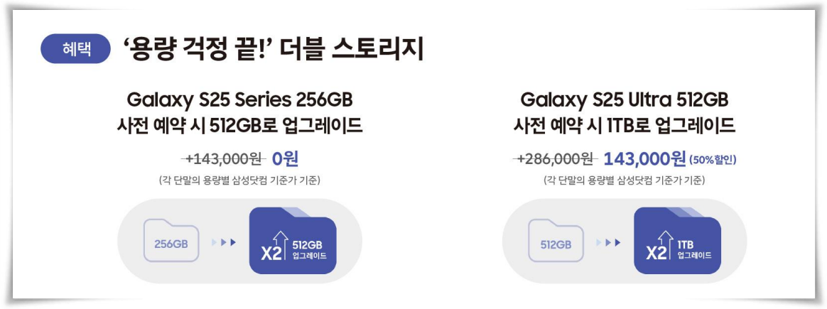 갤럭시S25시리즈 256GB -> 512GB 업그레이드 (143,000원 혜택)