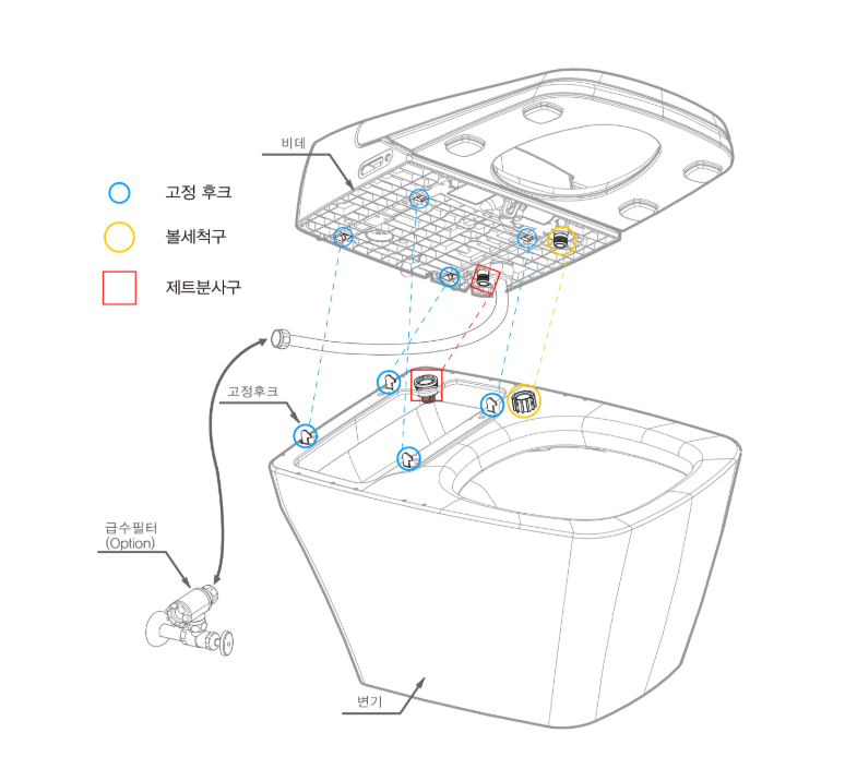 보보 일체형비데 고장 - 물빠짐, 물계속나옴, 변좌깜빡임 자가수리