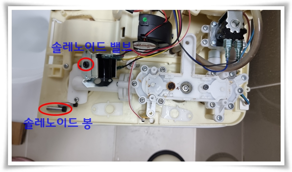 몇일전 물을 내렸는데 멈추지 않고 계속물이 나와서 변기 밑에 수도밸브를 잠그고 여기저기 정보검색을 하고 분해를 했습니다. 검색결과 솔레노이드 밸브 불량이면 물이 계속나오거나 변기에 물이 빠지거나 내려가지 않는다는 정보를 얻고 자가수리 도전을 했다가 실패 했습니다.