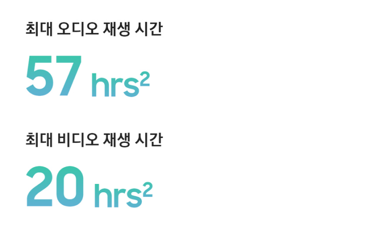 최대 57시간 음악 재생, 최대 20시간 영상 재생