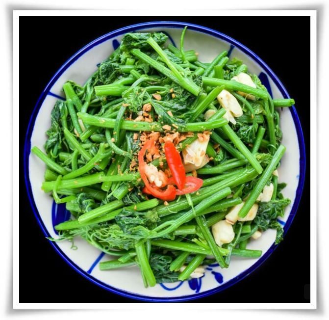 베트남에서는 공심채를 단순히 삶아서 간장이나 마늘 소스와 함께 먹는다.