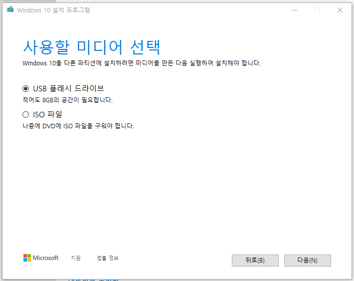 - 다른 PC용 설치 미디어 만들기 (USB설치 디스크 만들기)