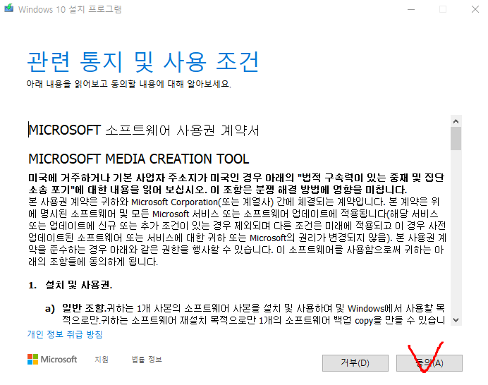 다운로드 받은후 실행을 하면 위와 같은 "관련통지 및 사용조건" 에 대한 정보확인후