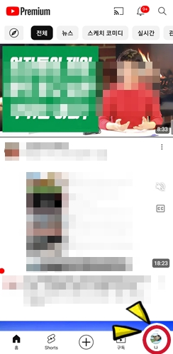 II. 유튜브 실행후 우측아래 계정을 클릭합니다.