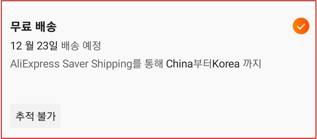 따라서 이 배송방식이 있을때는 다른배송방법과 가격비교를 해봐야한다. 보통 Saver Shipping을 지원할경우 매우 높은확률로 Standard Shipping도 지원하는데 중국 내부에서는 스텐다드 쉬핑으로 처리되는 탓에 생각보다 가격차이가 크지 않다. 따라서 어지간하면 푼돈 조금 더네고 스탠다드 쉬핑으로 업그레이드 시키는게 정신건강에 이롭다.