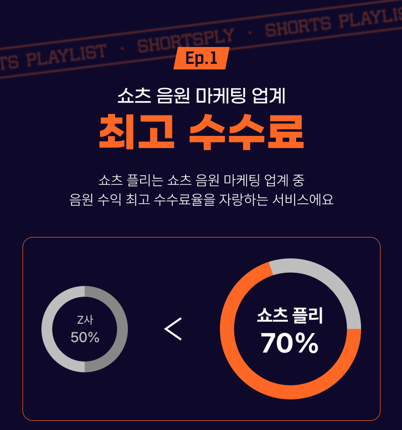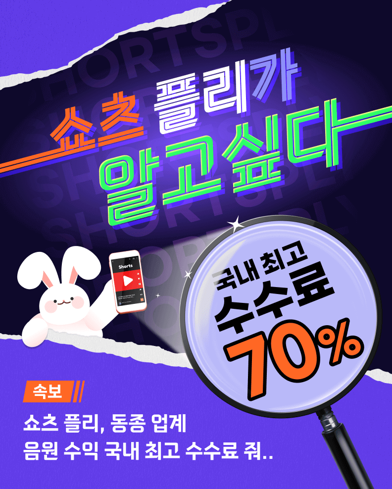 - 쇼츠 음원 마케팅 업계 중 국내 최고 수수료 70%를 적용해 드립니다.