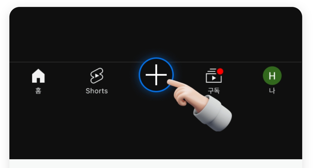 3. 유튜브 앱에서 +버튼을 클릭해 주세요.