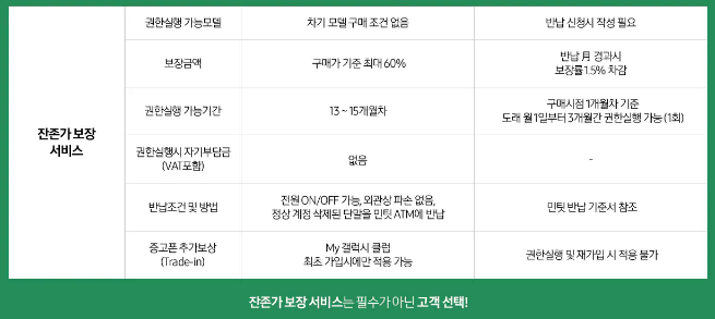- 권한실행은 조기에도 실행할 수 있으나 보장률은 구매가의 최대 60%를 초과하지 않습니다.