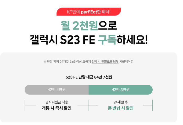 ※. KT 갤럭시S23Fe구독(월2천원)운영중 이며