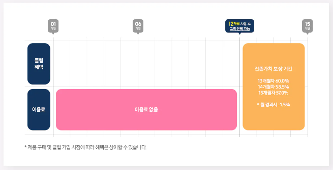 - 클럽이용료는 무료이며 "잔존가 보장 서비스"가 포함 되어 있습니다.