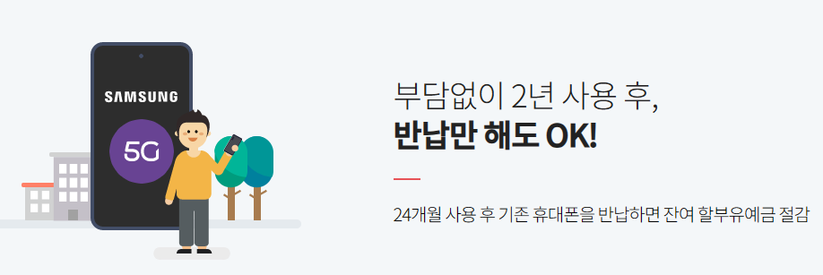 -> 2년후 S23Fe를 반납하면 423,000원 중고폰 보상을 받을수 있습니다.