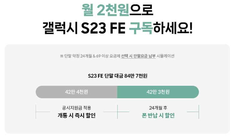 - 월 2천원으로 갤럭시 S23Fe 구독으로