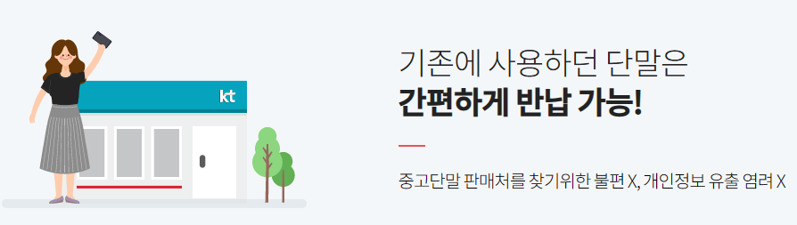- 본 서비스 가입 24개월간 서비스 이용료가 전부 납부되고, 만기 후 2개월 이내에 고객이 사용하던 기존 휴대폰을 반납하면 월차별 보장율에 따라 반납된 휴대폰의 중고 매입가격을 보장해 드립니다.