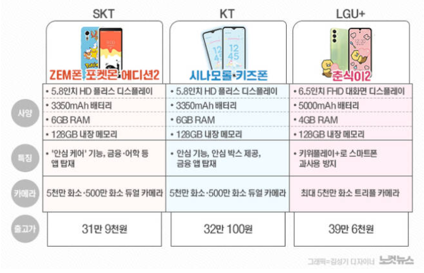 2024년 1월부터 SK ZEM폰 포켓몬에디션2, KT시나모롤키즈폰, 유플러스키즈폰 춘식이2가 졸업, 입학 초등학생을 위해 출시 되었네요..