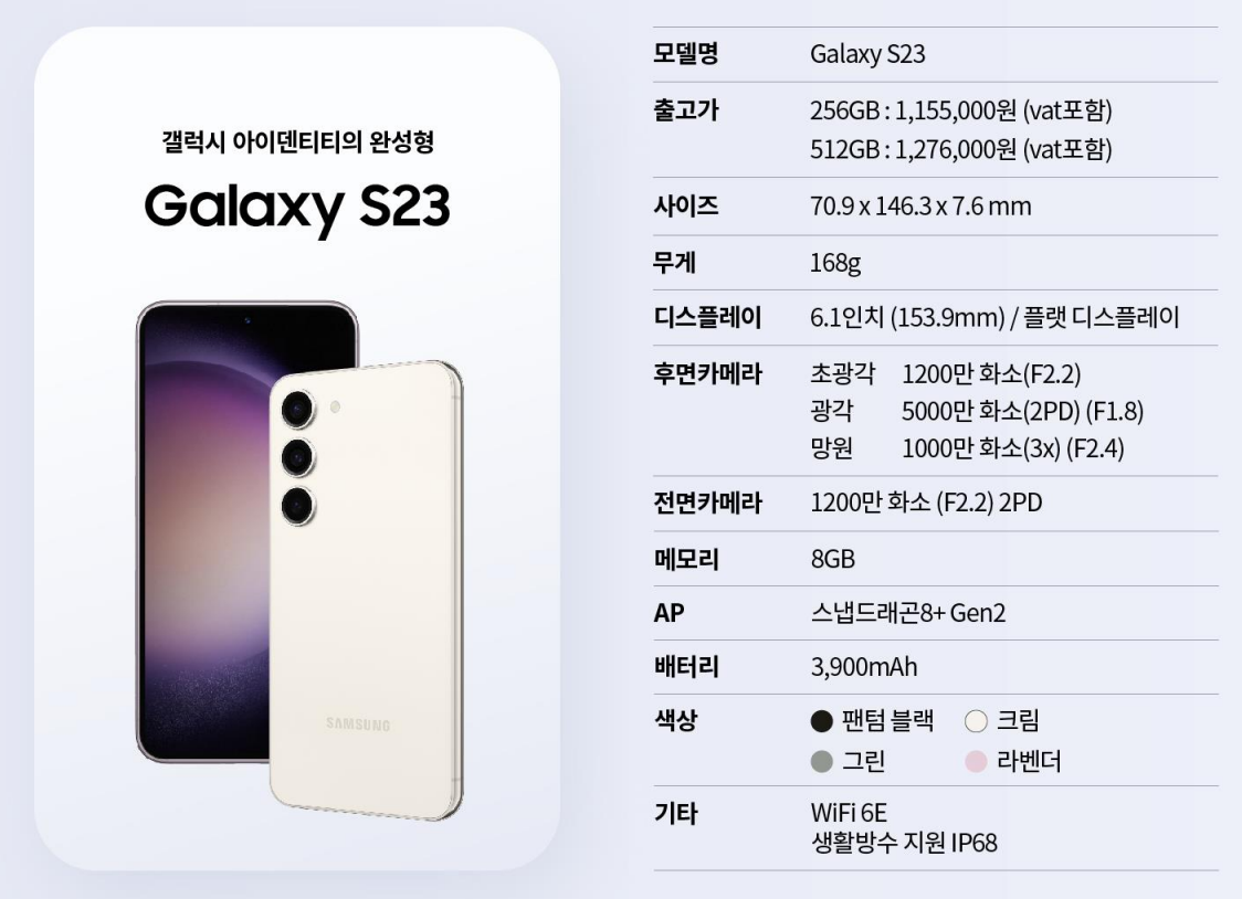 1.갤럭시 S23 (SM-S911) 주요스펙